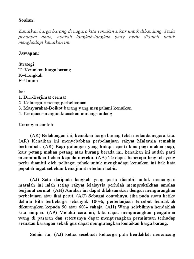 Contoh karangan faktor kesan serta langkah mengatasi kenaikan harga barang. Langkah yang pertama ialah kerajaan hendaklah menguatkuasakan undang-undang kenaikan harga barang. Harga Kereta Harga bulanan.
